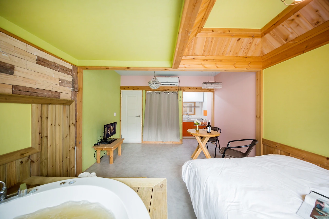 객실은 침실과 주방이 분리된 구조이며, 침실에는 고급 안티알러지 침구를 사용해 질 좋은 숙면을 보장한다. 요청 시 거위털 침구도 대여가 가능하다. 주방에는 전기포트와 밥솥을 비롯한 주방용품 일체를 제공하고 있어 취사를 할 수 있다.