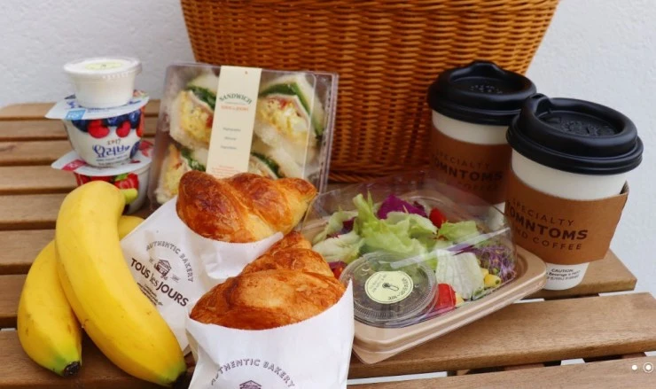 여수 르그랑블루 리조트 조식은 1인 1만 원이다. 객실로 배달되어 더 프라이빗하게 즐길 수 있다~ 샌드위치, 크로와상, 요거트, 바나나, 샐러드, 커피 또는 음료로 구성되어 있어 든든하게 먹을 수 있다.