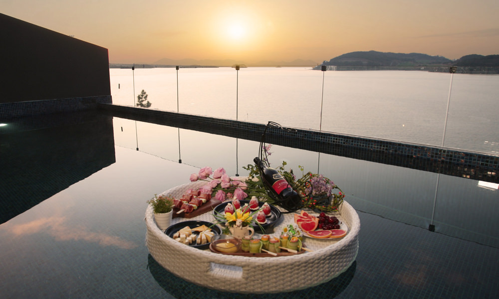 물론 조식을 챙기지 않는 분도 계실 거다. 걱정할 필요가 없다! 플로팅 조식을 디너 메뉴로 즐길 수 있는 플로팅 선셋이 마련돼 있다. 로맨틱한 와인 한잔과 화려한 일몰, 더할 나위 없다.
