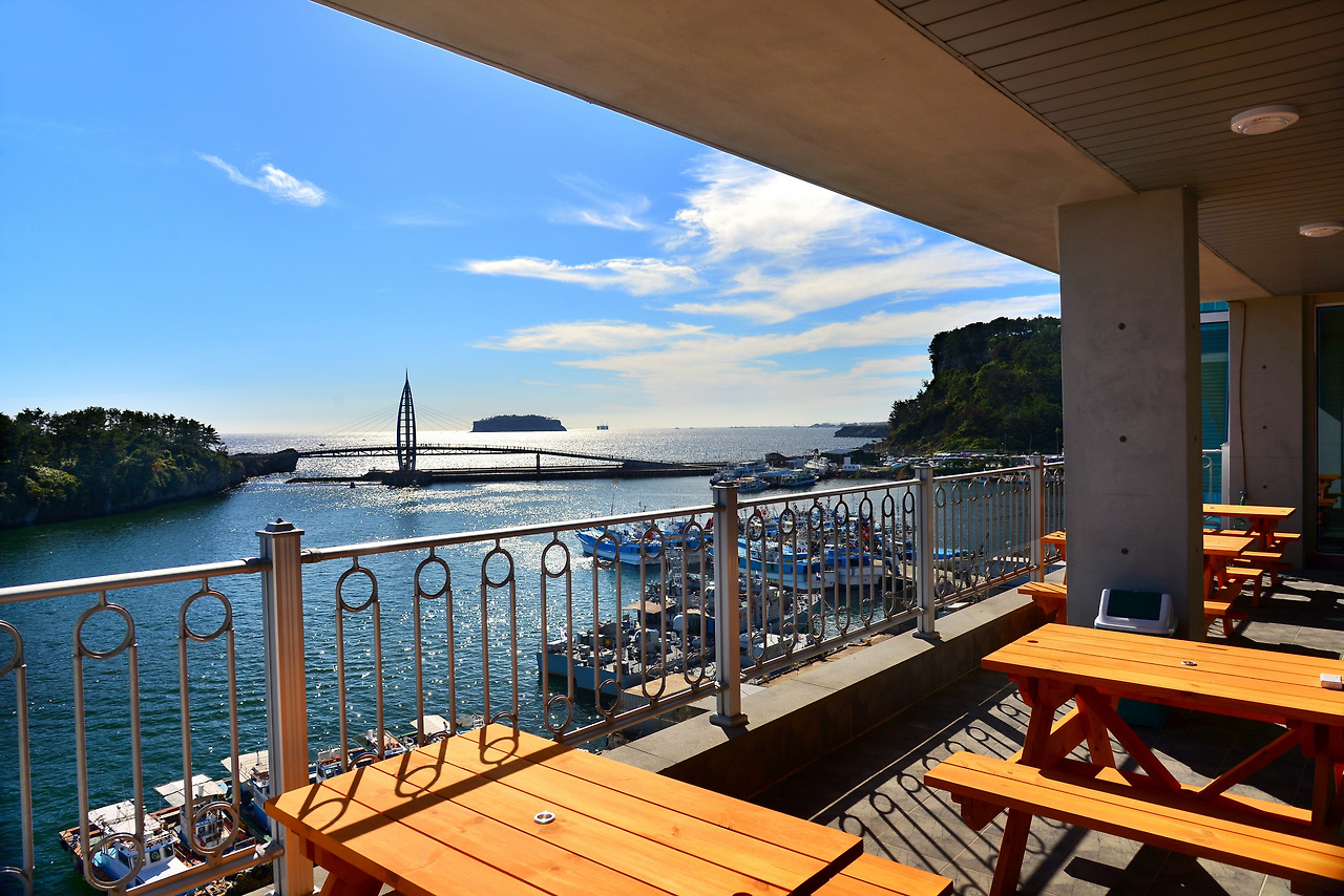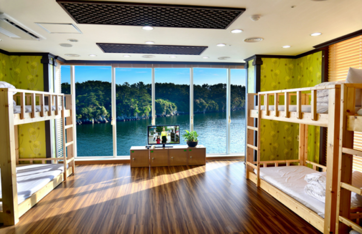 천지연 폭포 근처 서귀포 미항 바로 앞 건물에 있어서 오션뷰 전망을 보실 수 있는 게스트하우스로 서귀포항 근처라 바다 전망도 보이고, 이중섭거리랑도 가까워서 시내 구경하기에도 좋다. 파티가 없고, 소등이 11시라 조용히 쉬고 싶을 때 추천한다. 로비 쪽에는 제주 여행 정보가 담긴 팜플렛이 있다. 2019년 1월에 리뉴얼해서 객실은 깔끔하다. 방에 냉장고와 옷걸이가 있고, 흰 베드와 흰 베개로 깔끔하게 정리된 객실을 볼 수 있다.