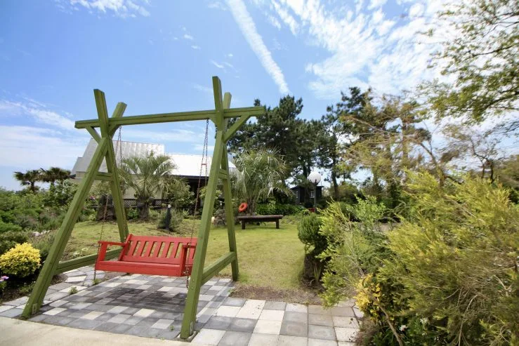 객실 별 야외 테라스에서는 2인 15,000원에 바비큐도 즐길 수 있다. 넓은 정원과 산책로에는 각종 허브와 수국, 동백 등이 가득 심겨있다. 산책로를 따라 10분 정도 걷다보면 표선 해비치 해수욕장에도 갈 수 있다