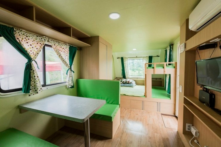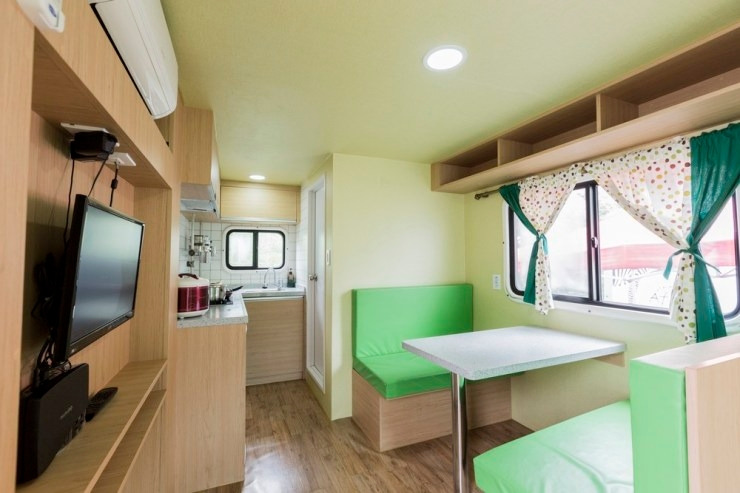 카라반 내에는 취사가 가능하고, 관련 취사도구 및 식기류도 모두 구비가 되어있어 맛있는 아침을 해먹을 수 있다. 캠핑장 안에 매점도 있어 간단한 물품은 멀리 가지 않고도 캠핑장 내에서 구매가 가능하다.