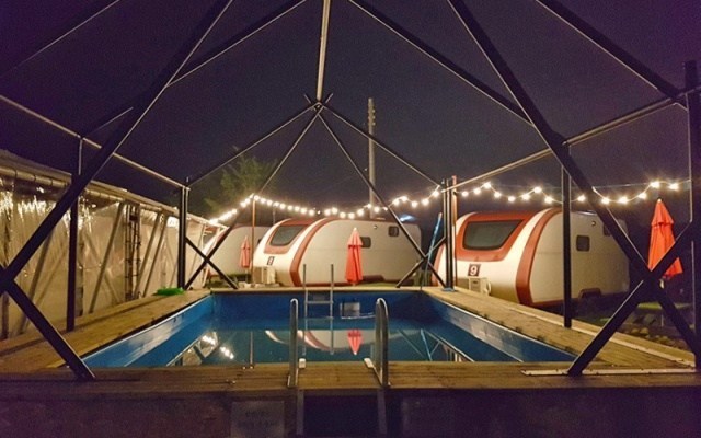 야외 캠핑장 분위기를 노란불빛의 조명으로 그대로 살린 야외 수영장에서 해가 뜨거운 날 시원하게 물놀이를 할 수 있는 제부도 카라반 캠프! 아직은 바닷물놀이를 즐기기에는 어린 아이들을 동반하는 가족여행에 추천한다. 또한, 캠핑장 한켠에 마련돼 있다.