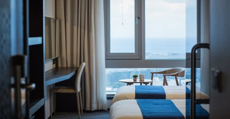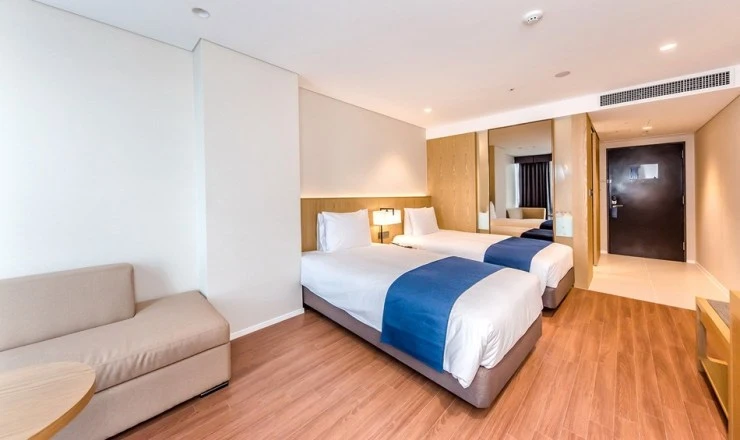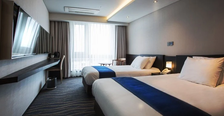 디럭스 트윈룸은 오션뷰&시티뷰 전망으로 저렴한 가격에도 좋은 전망을 감상할 수 있는 객실이다. 객실 면적이 넓은 편은 아니지만 센스 있는 가구배치로 편안한 휴식을 도와준다.
