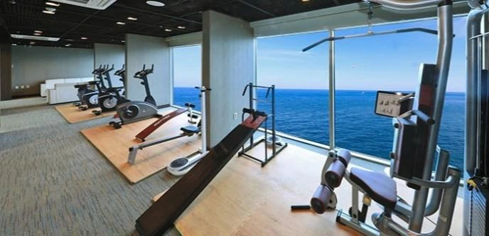호텔 시리우스의 하이라이트는 제주 바다와 시내를 한눈에 감상할 수 있는 오션뷰 수영장이다. 통유리창 덕분에 답답함 없이 즐거운 시간을 보낼 수 있으며, 매일 7시부터 21시까지 이용 가능하다. 피트니스센터도 있어 체력단련을 할 수 있다.