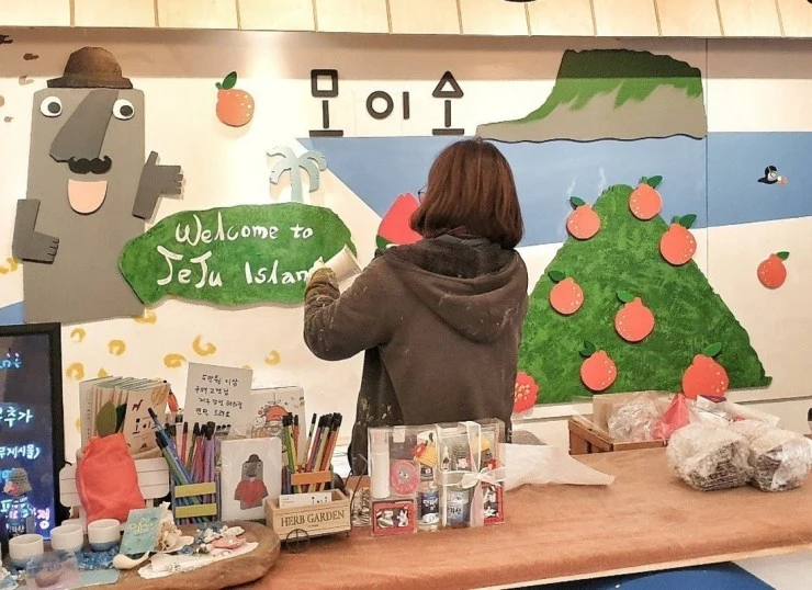 제주공항 8분 거리에 있는 소품샵 제주 모이소는 다양한 분야의 예술작가들이 만든 핸드 메이드 소품을 판매하는 곳이다. 카페와 공방도 함께 운영하고 있으며, 제주 특산물로 만든 디저트도 먹어볼 수 있고, 원데이 클래스도 즐길 수 있다.