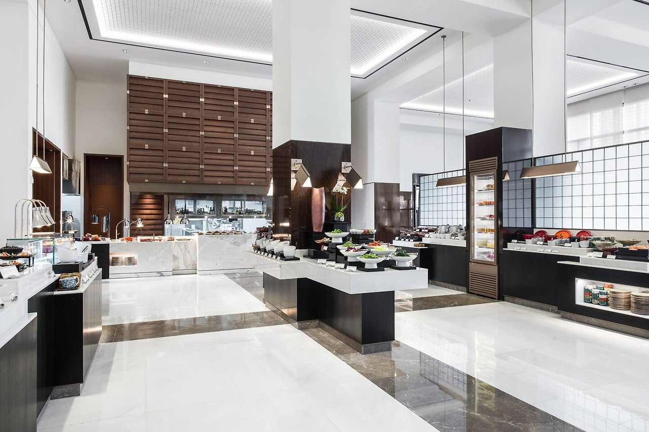 조식은 클럽 라운지와 셰프 팔레트 중 선택할 수 있다. 셰프 팔레트 기준으로 오전 6시부터 10시까지 이용 가능하다. 샐러드부터 과일, 동서양 핫푸드 등을 고루 갖춘 뷔페식으로 하니는 즉석에서 만들어주는 에그 베네딕트를 추천한다.