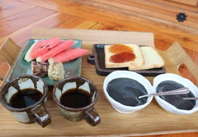 삼락헌의 무료조식으로는 흑임자죽, 수제쨈, 토스트, 커피, 우유, 매실차, 사과 등이 제공되며, 이 중 흑임자죽 평이 가장 좋은 편이니 꼭 먹어보자!