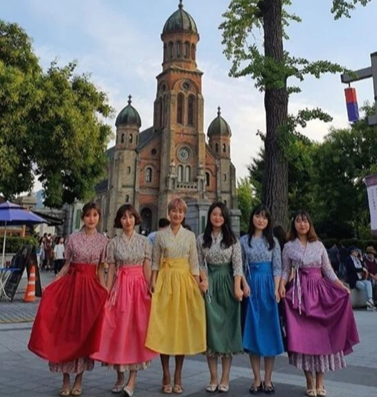 한옥 마을 근처에 생활한복/한복/개화기 의상을 대여할 수 있는 장소가 많으니, 알록달록 예쁜 한복 입고 전동성당을 배경으로 5월의 봄을 담아 보자~