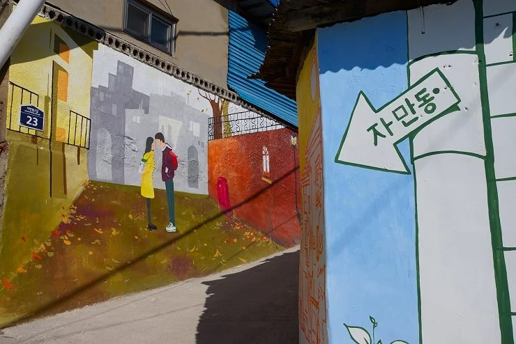 자만벽화마을은 의외로 모르는 사람들이 많은 곳이다. 전주 한옥마을에서 도보 12분에 위치한 조그만한 벽화거리이다. 아기자기한 벽화들과 함께 인생샷을 꼭! 찍어보자. 그냥 걷고 있는 자연스런 모습도 좋다.