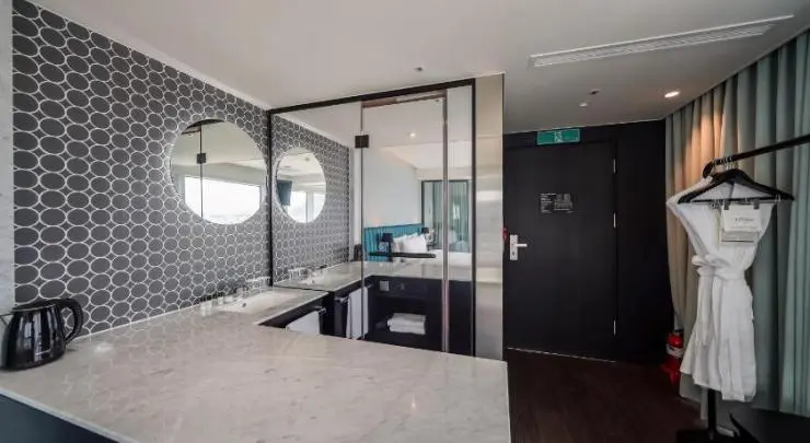 욕실에는 욕조가 있어 오션뷰 풍경과 함께 입욕을 즐길 수 있다. 어메니티는 샴푸와 컨디셔너, 바디워시, 칫솔이 구비되어 있으며, 그외에 필요한 어메니티들은 로비에 요청시 받을 수 있다.