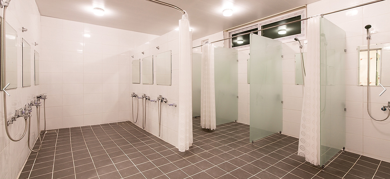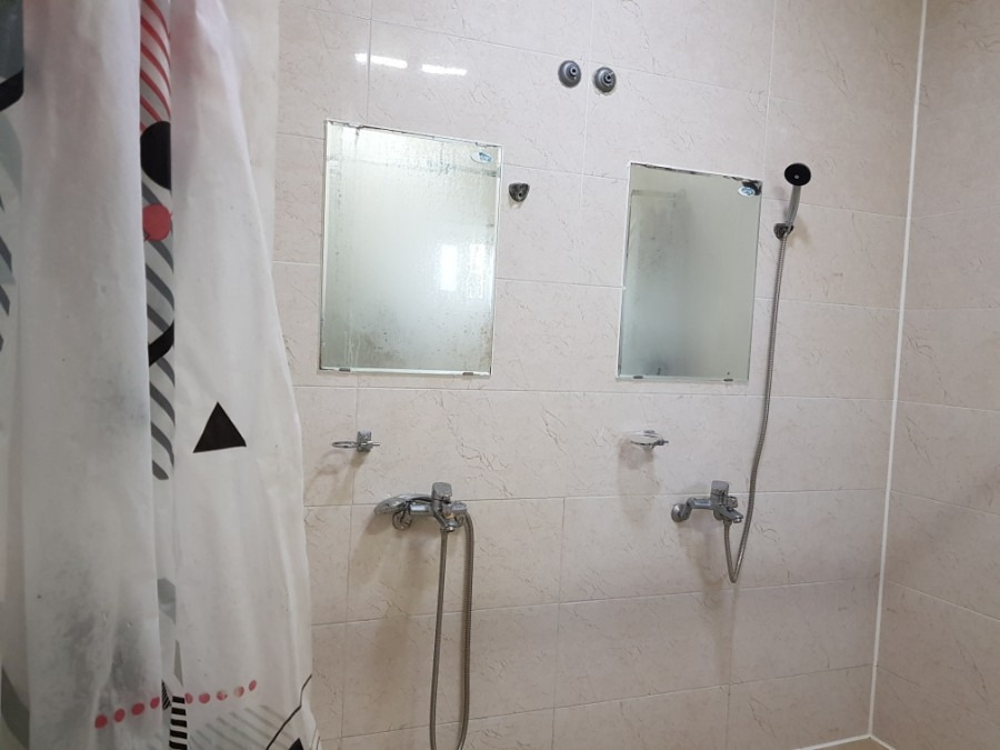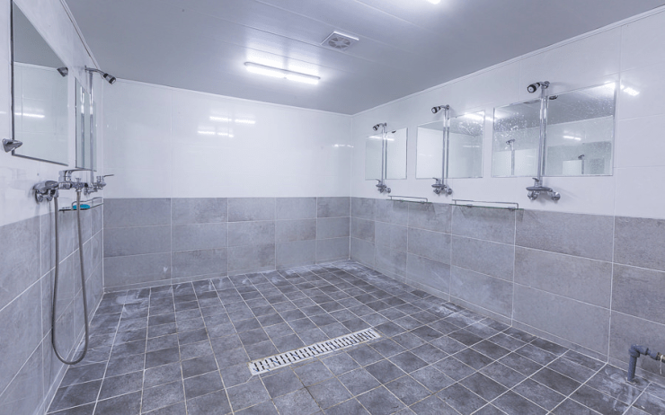 샤워실과 화장실은 공용 공간을 이용해야 한다. 매우 깔끔하고 개별 칸막이와 커튼도 있어서 이용에 큰 불편함이 없다. 세면용품은 매점에서 일회용품을 구매하시거나 집에서 직접 챙겨와야 한다.