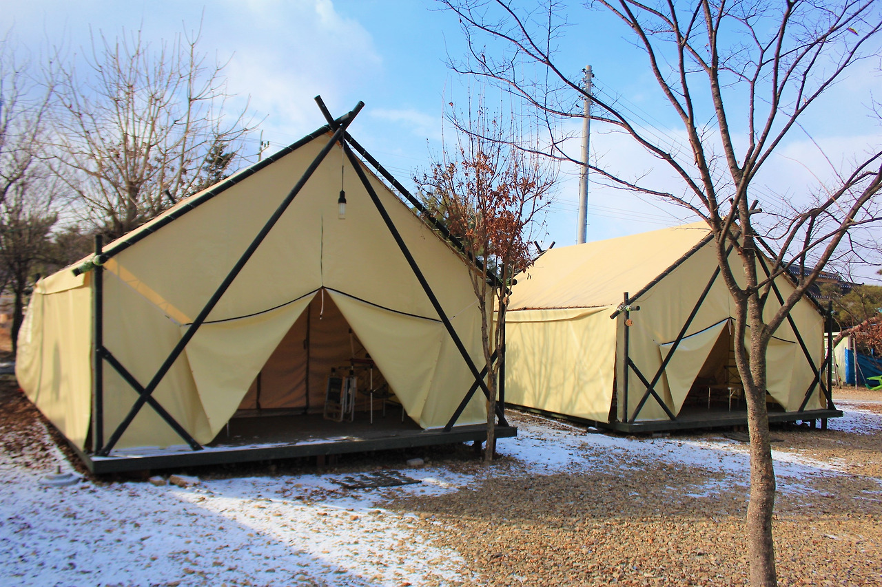 파주 적성면에 위치한 하늘연 캠핑장은 임진각 평화누리 공원은 차로 25분, 퍼스트 가든은 40분 정도 소요된다. 앞서 소개한 숙소보다 거리가 좀 있지만 그만큼 더 맑은 공기와 자연을 경험할 수 있다! 독채형으로 구성된 텐트에서 프라이빗한 캠핑을 경험하고 싶으신 분들께 추천한다.