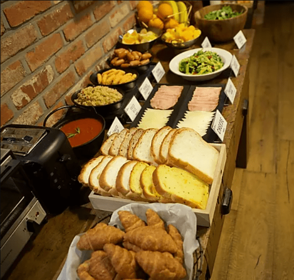 디럭스 이상 등급의 객실에 숙박 시 무료로 조식을 이용할 수 있으나, 현재는 코로나로 인해 이용이 중지된 상태이다. 평소에는 토스트와 샐러드, 시리얼 등이 제공된다.