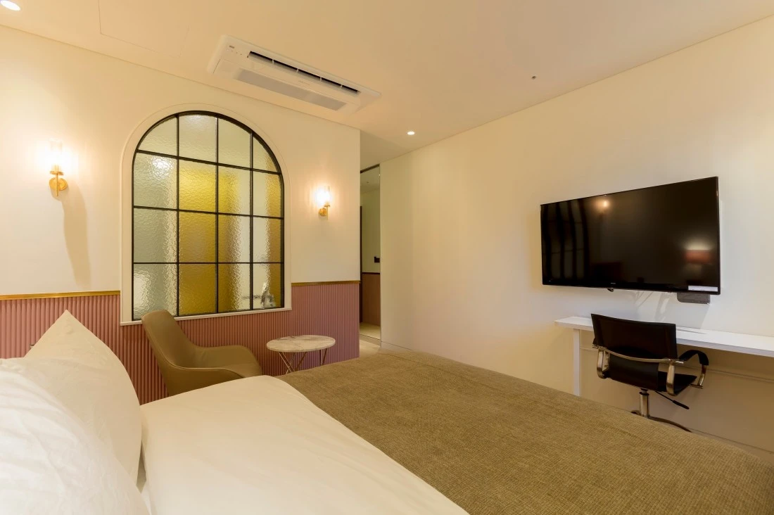 더 포스트 호텔은 매우 다양한 객실 디자인을 보유한 부티크 호텔이로 가장 기본 객실인 스탠다드 객실도 고급스럽고 센스있는 인테리어로 기분전환 하기에 딱 좋다. 넉넉한 사이즈의 더블베드와 릴렉스 체어, 냉장고와 커다란 텔레비전이 구비되어 있으며, 넷플릭스 시청이 가능해 더욱 즐거운 호캉스를 누릴 수 있다.