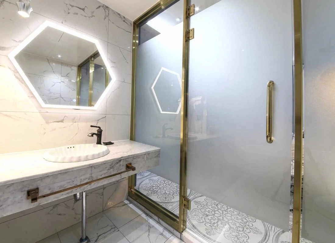 욕실 내에는 샤워부스가 설치되어 있으며, 샴푸와 컨디셔너, 샤워젤, 바디로션이 어메니티로 구비되어 있다.