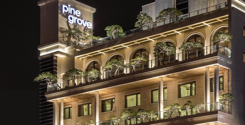 파인 그로브라는 호텔 이름에서 알 수 있듯이, 테라스마다 근사한 나무가 자리 잡고 있다. 도심 속 힐링을 즐기기에는 딱이다. 로비, 복도, 객실 등의 인테리어도 체인 호텔 못지않게 고급스럽다.