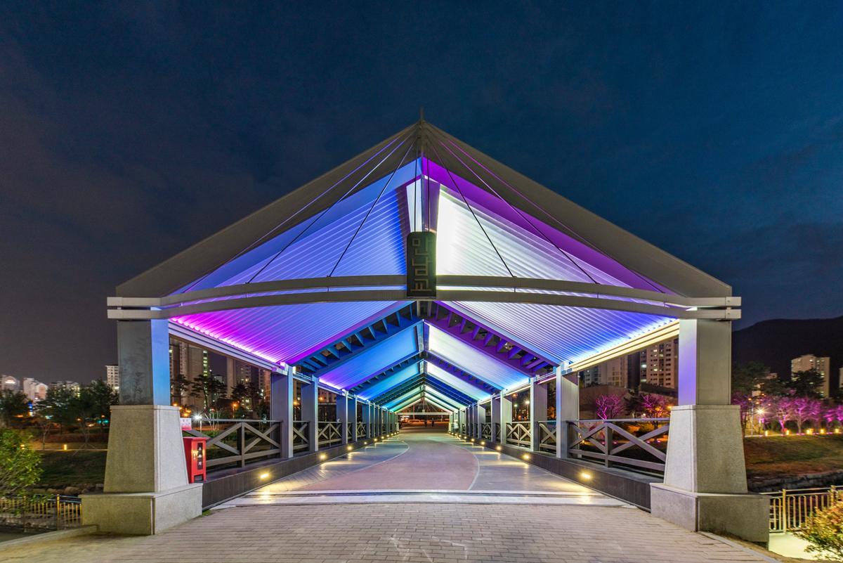 율하천을 정비하고 수변공원 사이에 만남교가 놓이며 자연스레 카페거리가 생겼는데, 야외 테라스에서는 도심 속 녹지를 커피 한 잔과 함께 즐길 수 있어요. 한여름 낭만을 만끽하고 싶다면 역시 밤 시간대에 방문해보자.