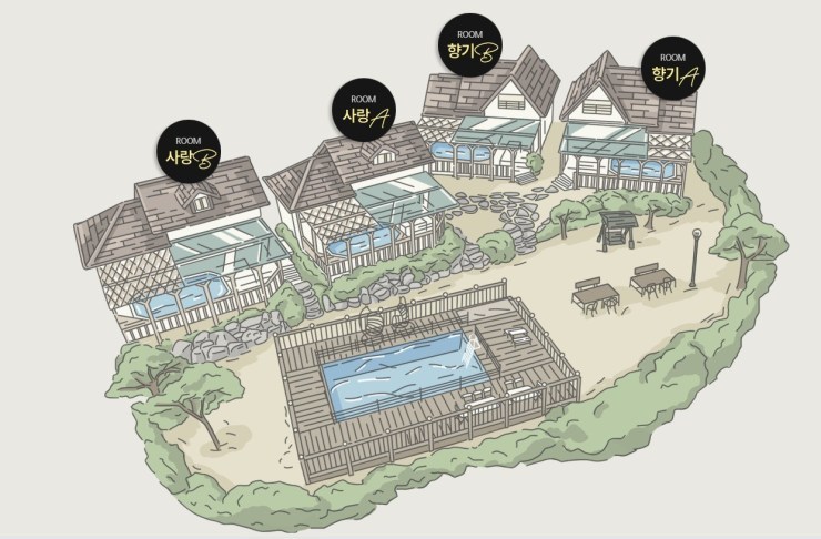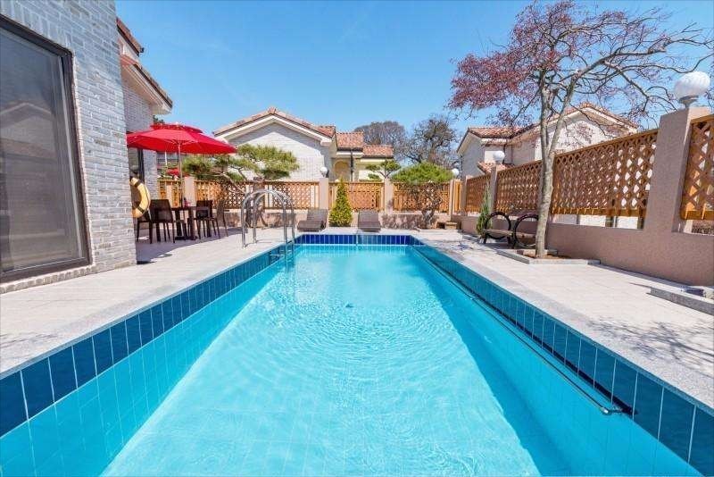 풀빌라 A동, B동 모두 개별 수영장이 있어서 프라이빗하게 이용 가능하다. 바베큐장도 있어서 보다 더 즐길 수 있다! 온수는 되지 않는다. 봄 드라이브 하며, 인생샷도 찍고 유럽형의 감각적인 인테리어인 태안 안면도 숙소를 만나보자.