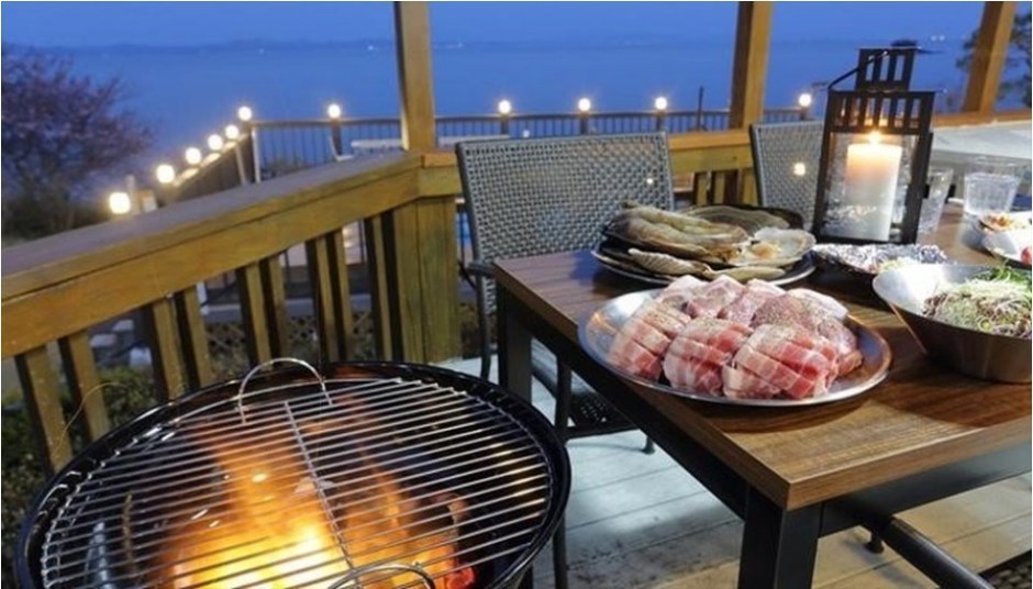 객실 별로 바베큐장이 마련되어있어서 프라이빗하게 식사할 수 있는 것도 장점이다. 바베큐 그릴세트는 2인 기준 3만원이라는 합리적인 가격으로 이용할 수 있다.