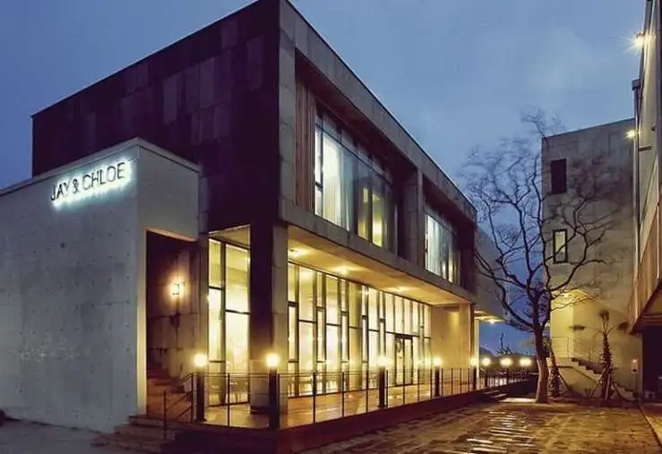 탁 트인 오션뷰를 담기 위한 전면 창과 깔끔한 모노톤이 인상적인 외관.주변 경관을 해치지 않고 자연스럽게 어우러지려 한 노력이 돋보인다.