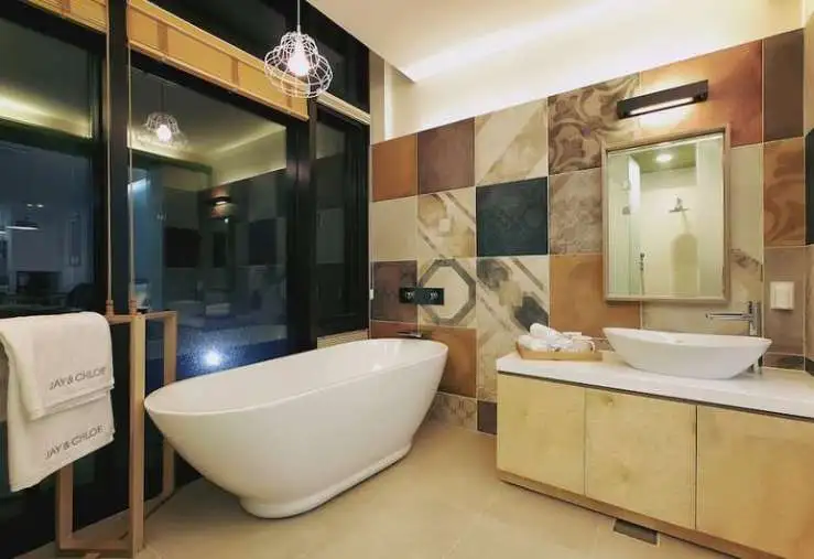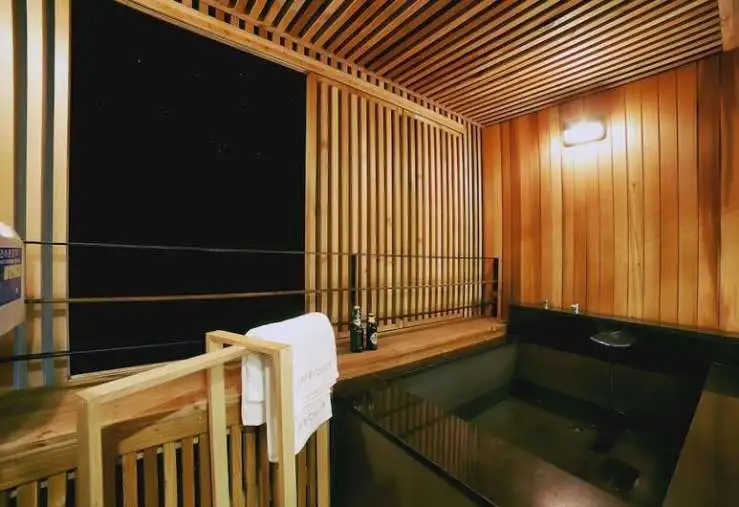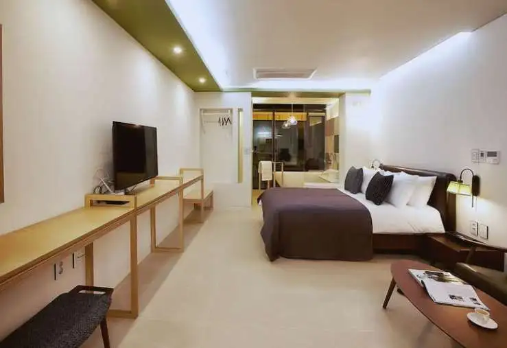 더블 베드와 전용 욕실, 야외 자쿠지, TV, 테이블, 의자, 냉장고, 전자레인지 등을 갖췄다. 비품은 객실 타입 별로 다른데, 호텔형 기준으로 욕실 어메니티는 샴푸와 린스, 바디워시가 리필형 용기에 제공된다. 치약과 비누, 수건, 헤어드라이어 등도 있지만, 개인 위생용품과 세안제는 챙겨가야 한다.