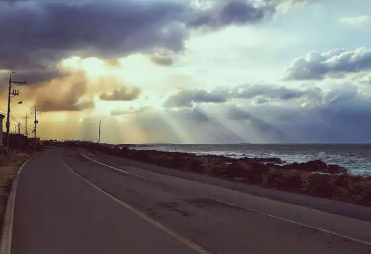 오션뷰로만 만족 못 하겠다면, 숙소 바로 앞으로 나가보자. 노을 해안로라는 이름값을 하듯, 제주에서 가장 아름다운 선셋을 볼 수 있다. 정돈된 해수욕장은 아니지만 그만큼 깨끗한 자연을 마주할 수 있다. 걸어서 1분이면 충분하다