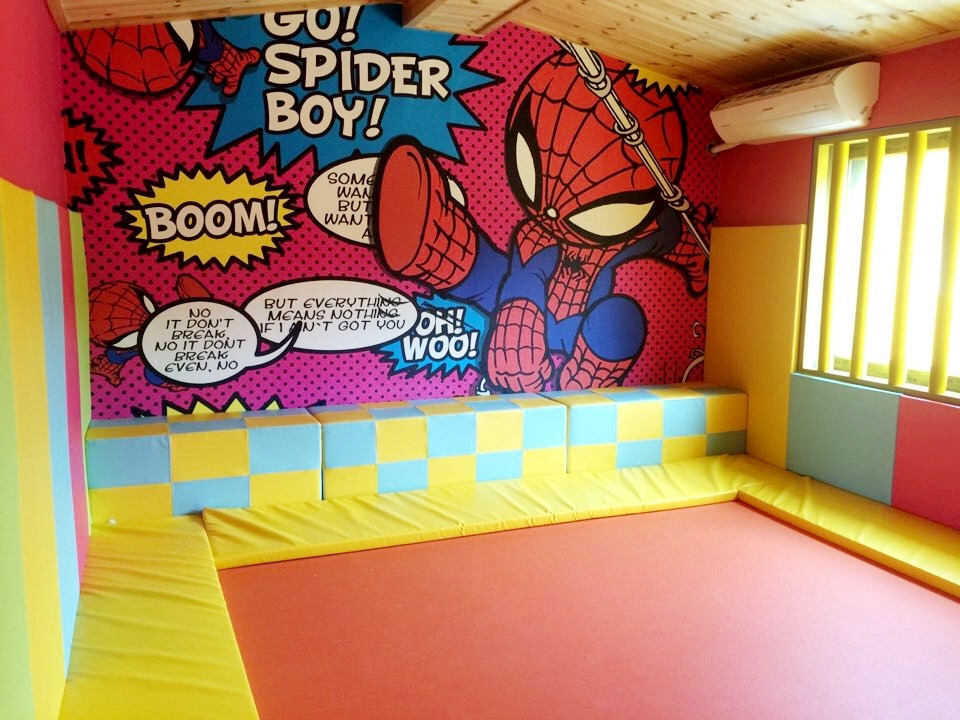 프로방스풍 인테리어가 따뜻하게 반겨주는 가을노을키즈펜션은 총 6개의 프라이빗 객실로 이루어져 편안한 휴식을 취할 수 있는 독채 펜션이다. 자몽 독채 객실에는 우리 아이들도 스파이더맨으로 변신할 수 있는데, 벽면 한 쪽이 스파이더맨으로 꾸며진 캐릭터룸에는 대형 트램폴린이 있어 신나게 뛰어놀기 제격일거다.