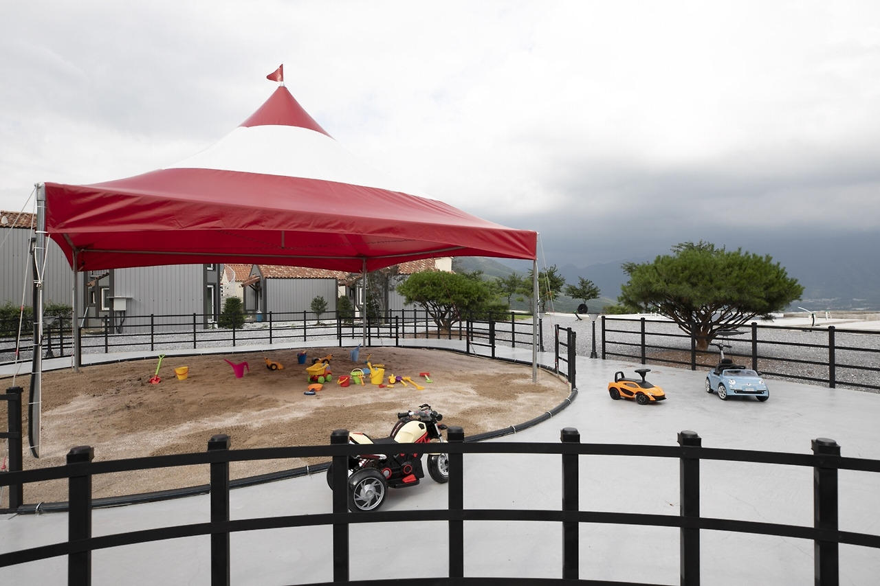 토담키즈풀빌라는 야외에도 아이들을 위한 공간이 마련돼 있다. 모래 놀이터는 아이들이 강한 햇빛에 노출되지 않도록 원형 천막 아래 다양한 장난감과 놀이공간이 마련돼 있어 상상력을 키울 수 있다. 포천 국립수목원과는 차로 45분 정도 소요된다.