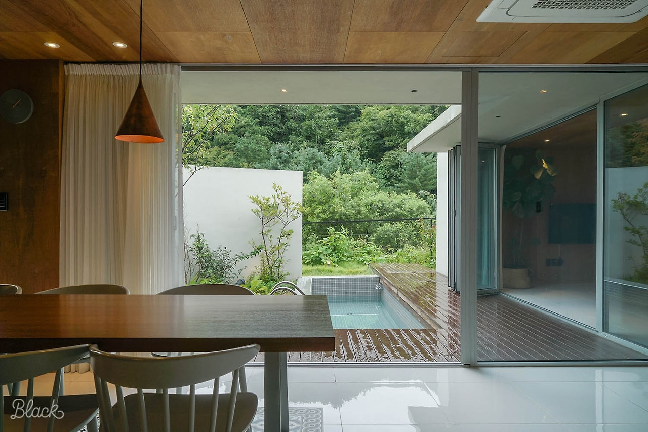 화이트 컬러와 입체적 구조가 돋보이는 유알풀빌라는 원주의 푸른 숲과 어우러져 그림 같은 장관을 연출한다. 울창한 숲 속 힐링을 경험하고 싶다면 이곳이 제격이다.