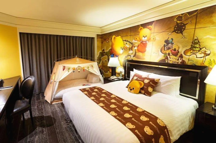 로티 로리 코너 스위트 룸은 넓은 객실과 편의시설로 3~4인 가족도 투숙 가능하다. 더블베드와 싱글베드, 소파, 테이블, TV, 티포트, 전용 욕실 등을 갖췄다. 객실 안에서는 놀이공원 내부가 보인다.