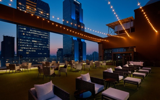.탁트인 시티뷰와 석양을 자랑하는 신라스테이 삼성의 루프탑 테라스. 요즘같은 날씨에 정말 강력추천하고 싶은 곳이다. 맥주 한 잔에 5,500원부터 시작해 호텔 루프탑이지만 저렴하게 기분내기 좋다. 참고로 호텔 21층에 라운지 Bar 와 연결되어 있다.