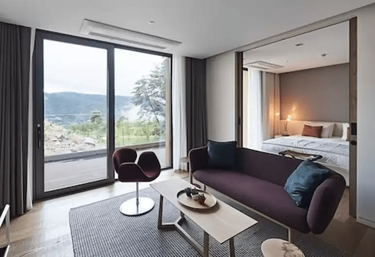 리조트 내 포도호텔과 디아넥스 호텔이 운영 중인데 효도 여행이라면 포도 호텔을 추천한다. 디럭스와 스위트 모두 한실 객실을 보유했다.