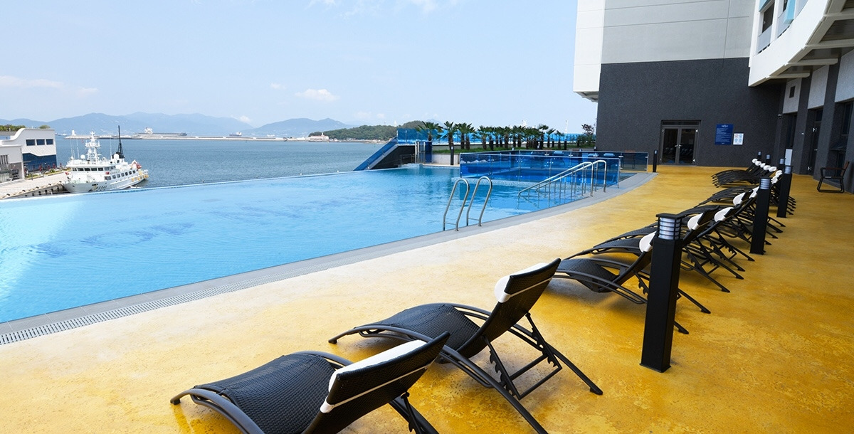여수 바다와 함께 이어지는 낭만적인 인피니티 풀은 3층에 위치해 있다. 오후 3시부터 저녁 7시 반까지는 모든 연령층 이용 가능하며, 저녁 8시부터 10시까지는 성인만 이용 가능하다. 그뿐만 아니라 인피니티 풀과 함께 즐길 수 있는 스낵바와, 건식 사우나도 한쪽에 마련되어 있다.