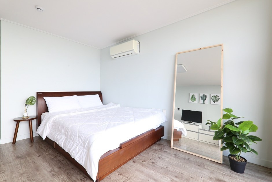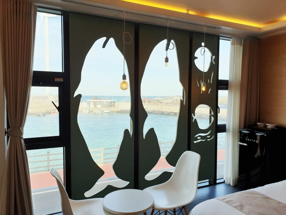 전 객실 프론트 오션뷰로 매우 뛰어난 객실 전망을 자랑하며, 객실마다 다른 컨셉으로 창문이 꾸며져 있어 고르는 재미가 있다. 다양한 컨셉의 포토존에서 예쁜 사진을 남길 수 있는 감성적인 펜션이다. 301호를 제외하고 나머지 객실에서는 취사가 어렵지만, 객실 내 전기포트와 와인글라스, 커트러리가 있어 간단한 취식은 가능하다. 로비에 전자렌지도 설치되어 있다.