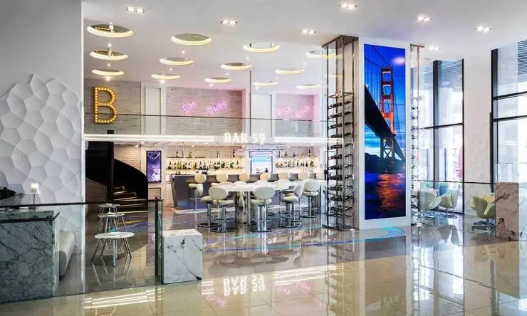로비는 1층에 연회장, 바(BAR 59)와 함께 자리 잡고 있다. 부대 시설로는 패밀리 풀과 인피니티 풀, 비즈니스 코너, 하늘 공원 등을 갖췄다. 두 개의 수영장이 각기 다른 층에 위치해, 투숙객 간 불편함 없이 이용할 수 있다.
