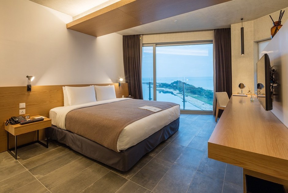 객실 등급은 스탠다드, 디럭스, 스위트 순이며 올스테이 하면 10만 원대 초반부터 예약 가능해, 가성비 호텔로 추천할 만하다. 전망은 바다와 산 중에 선택할 수 있다. 객실마다 손 소독제를 구비했고 마스크도 제공해준다.