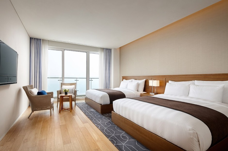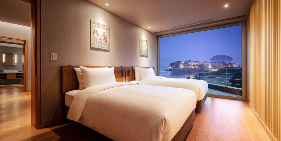 가족 여행객에게는 디럭스 트윈 씨사이드 뷰 룸을 추천한다. 더블 베드를 전면 유리창과 마주 보게 배치해, 편안하게 누워 바다를 조망할 수 있다. 싱글 베드가 구비된 벙커룸은 독립적인 공간으로 구분돼 있다.