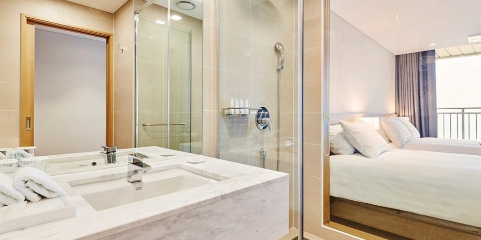 욕실 내에는 샴푸와 컨디셔너, 샤워젤, 바디로션, 칫솔, 치약이 어메니티로 구비되어 있다. 코너 스위트, 씨마크 스위트 등 일부 객실에서는 오션뷰 반신욕도 즐길 수 있다.