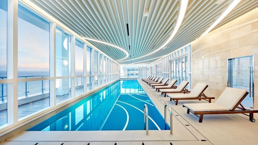 영업시간은 매일 7시~21시까지이며, 토요일은 24시까지로 매우 긴편이라 수영을 좋아하는 커플에게 참 좋다. 파노라마 오션뷰가 펼쳐지는 실내 풀장도 함께 이용할 수 있다.