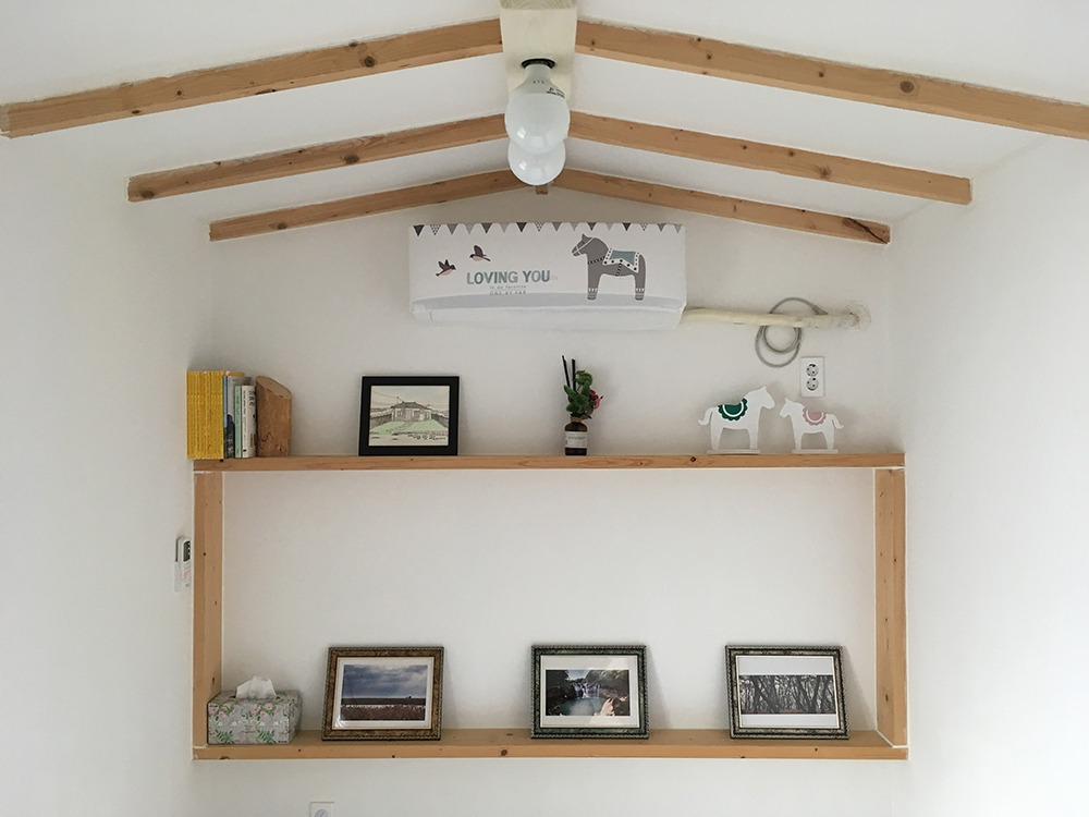 독채로 이루어진 그림 같은 담뜨락 펜션은 옛 제주 돌집을 현대적으로 리모델링 했다. 그래서 펜션 내부 곳곳에서 옛 돌집의 흔적을 찾아볼 수 있는데 나란히 붙어있는 침실과 거실 천장에는 피톤치드 가득한 편백나무 서까래를 그대로 살려 더욱 자연스러우면서도 아늑함이 느껴진다.