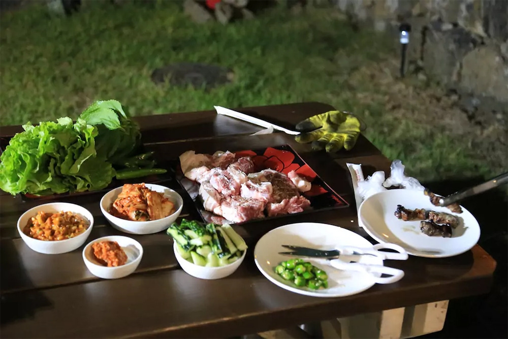 담뜨락 펜션에는 돌담으로 둘러싸인 넓은 마당과 잔디밭이 있어서 오붓한 바비큐 파티를 즐길 수 있다. 나무 그네도 한쪽에 마련되어 있으니 날씨 좋은 날 제주 햇살과 함께 감성과 여유 두 마리 토끼를 잡는 여행이 될 수 있다.