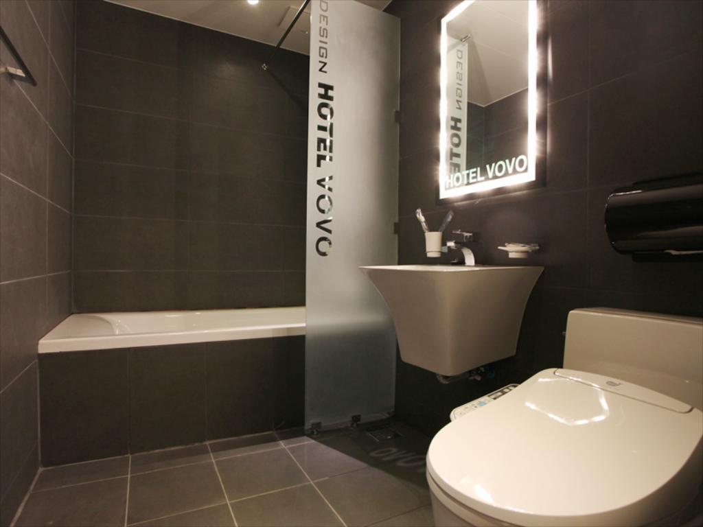 욕실은 그레이 톤으로 시크하며, 깔끔하게 정돈되어 있다. 샴푸, 린스, 바디워시, 칫솔세트, 면도기 그리고 수건 등 어메니티는 객실 바구니에 정갈하게 정리되어 있다.