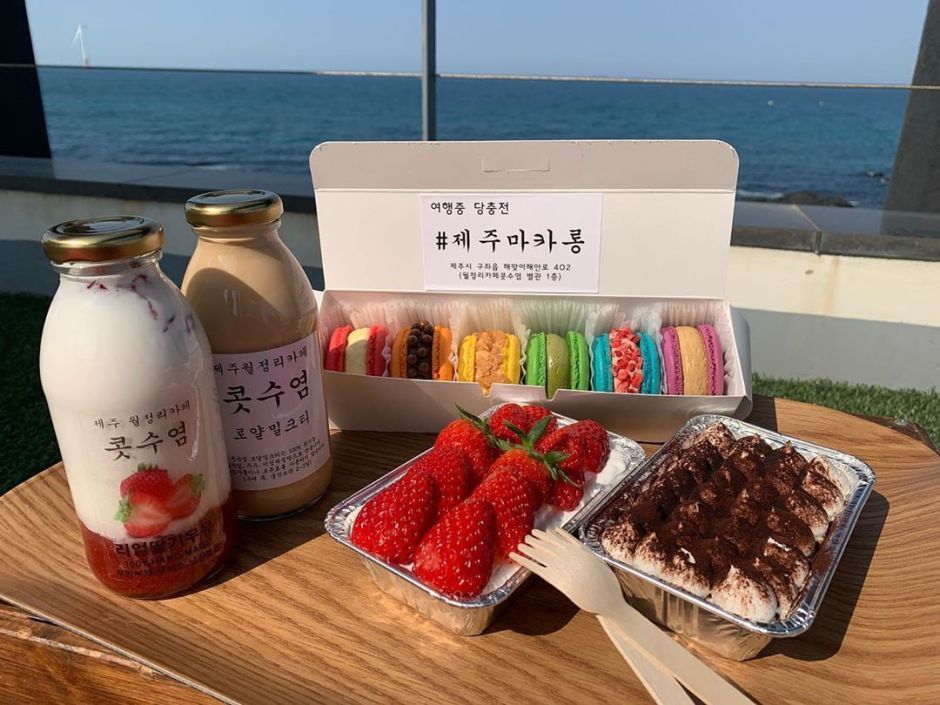 요즘 인스타에서 가장 핫한 제주 카페인 월정리 콧수염! 매일 직접 만드는 마카롱과 리얼 딸기 우유, 로얄 밀크티가 특히 유명하다. 애견 카페는 아니지만, 반려동물 동반이 가능하다. 탁 트인 월정 바다 전망을 반려견과 함께 즐겨보자.
