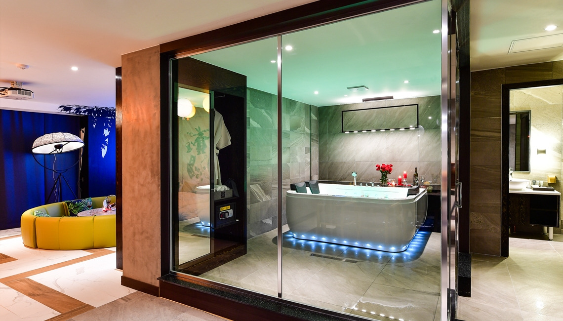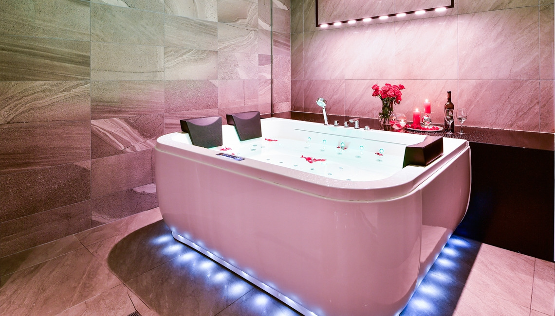화장실과 세면대 그리고 욕조가 각각 분리된 공간으로 디자인되어져 있다! 커플끼리 파티를 즐겨도 전혀 불편하지 않을거다. 샴푸, 린스, 샤워젤, 비누, 칫솔세트, 면도기, 빗은 물론 면봉, 샤워캡 어메니티도 세심하게 준비되어 있다. 그리고 성인 4명이 들어가도 될 정도로 넓고 깊은 월풀욕조가 호텔 리츠 파티룸의 핵심! 워터마사지 꼭! 받아보자.