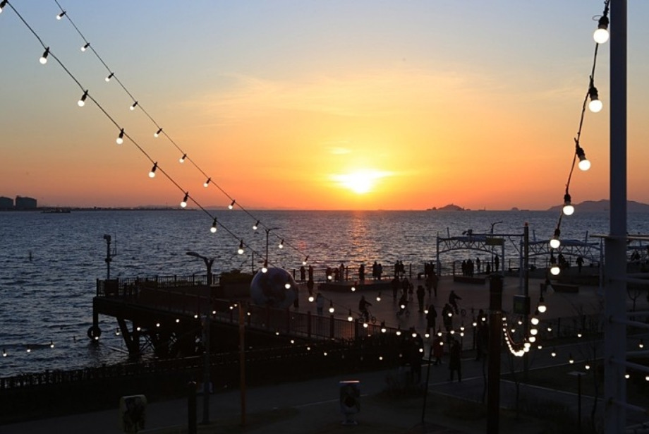 인천 송도 국제도시 해안가에 인접한 솔찬공원은 넓게 펼쳐진 바다를 볼 수 있는 공간이다. 나무데크가 설치되어 있어서 탁 트인 전망과 자유롭게 날아다니는 갈매기들을 볼 수 있다. 특히 잔잔한 서해 바다와 함께 보는 붉은 노을, 정말 황홀하다. 서울 근교 노을 맛집 코스로 빼놓을 수 없다.