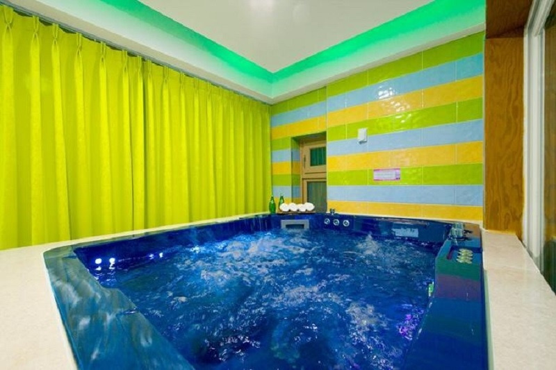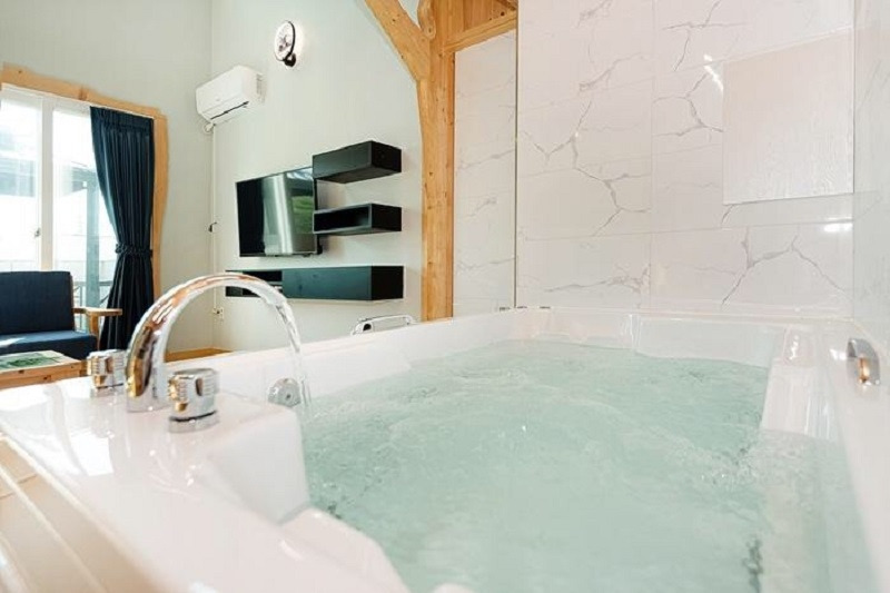 자연친화적인 인테리어의 복층 구조로 안락하며 편안하게 머물 수 있는 대부도 조아라 펜션의 거실에는 스파 욕조가 마련되어 있어서 비가 오는 날에도, 눈이 오는 날에도 날씨와 상관없이 반신욕을 즐길 수 있다.