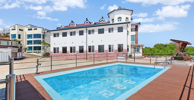 아라아띠 펜션에는 투숙객을 위한 야외 수영장이 마련되어 있는데 바로 앞 바다가 보이기 때문에 바다를 보며 물놀이를 즐길 수 있다.