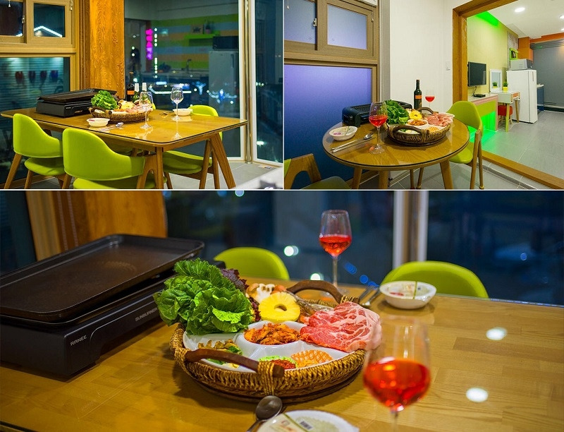 테라스에 제트스파와, 건식 사우나가 마련돼 있어 그동안 쌓인 피로를 풀기에 제격이다. 스파 옆에는 바비큐 테이블이 준비되어 있어서 대부도 노을을 보며 맛있는 고기를 맛볼 수 있다. 삼겹살과 새우, 소시지, 채소, 햇반 등이 포함된 바비큐 세트는 1인당 2만 5천 원에 이용 가능하다.