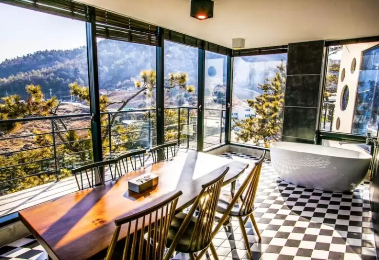 로비 공간에는 카페 탐앤탐스가 자리하고 있다. 부대시설로는 인피니티 풀과 풀사이드 노천탕, 스카이 워크, 산책로 등을 갖췄다. 일부 객실에는 스파와 프라이빗 씨어터 시설을 구비했다.